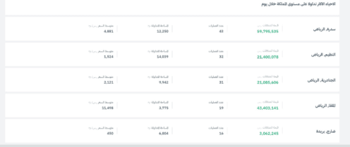 تحليل بيانات التداول اليومي للأحياء الأكثر نشاطاً...
