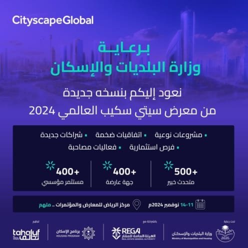 برعاية وزارة البلديات والإسكان، نعود إليكم بنسخة جديدة من الحدث العقاري الأضخم، معرض سيتي سكيب العالمي.
